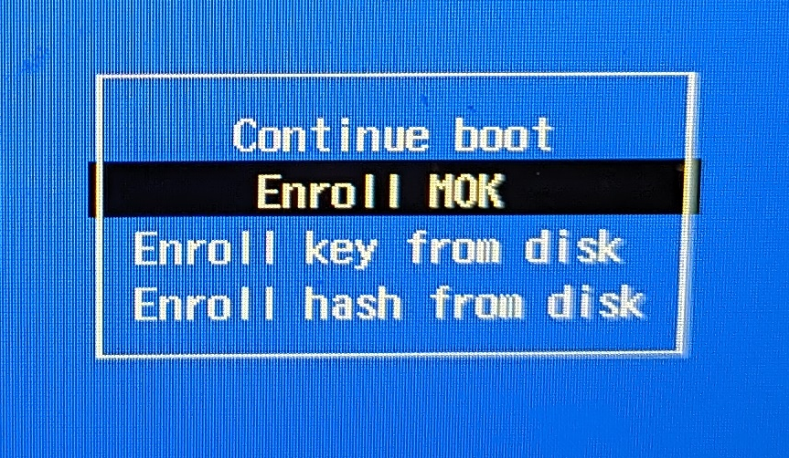 The right thing to do… We’re going to make the UEFI trust the signatures generated here for virtualbox. We need to let mokutil know what those signatures are and hand hold the OS into launching a self-signed bootloader (that’s more on-the-side jargon if you’re interested). First step, make the Machine Owner Keys (MOKs).